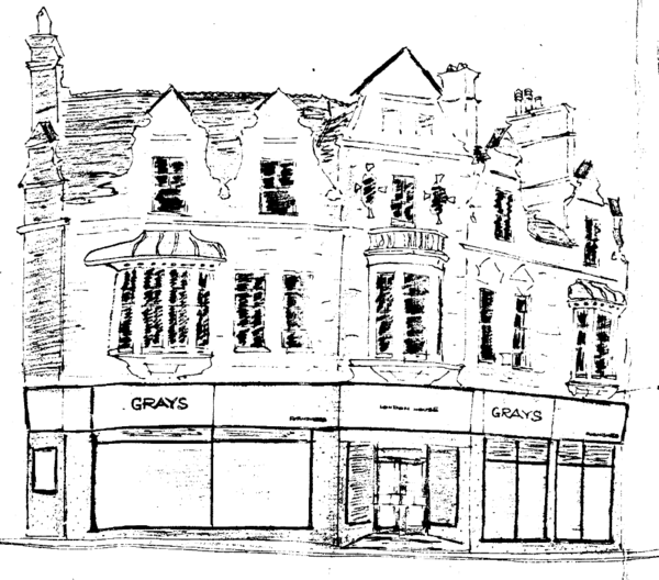 In the 1960s and 1970s, there was reportedly a newsagent in the ​building​[2], although evidence of this is non-existent in the planning records. A furniture store: Grays Furnishers installed a new shop-front in 1963 and changed the name of the ​building​s to 'London House'[3]