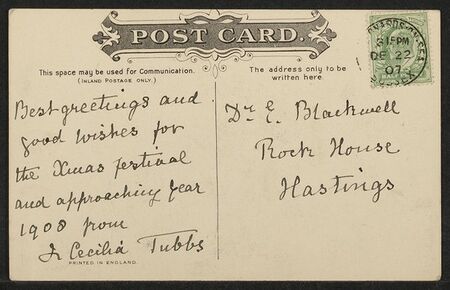 She threw her heart into every good cause, not caring if she attracted controversy. If in her heart she believed a cause to be right, she campaigned for it. Among the most controversial issues she supported were anti-vivisectionism and women's suffrage). Mrs. Tubbs gave the prizes at the Hastings & St. Leonards Collegiate School, run by feminist Emma Fricker Hall, secretary of the Hastings Branch of the National Union of Women's Suffrage Societies (NUWSS), of which Cecilia was a staunch member. Although a non-militant, Cecilia never denounced the militants.