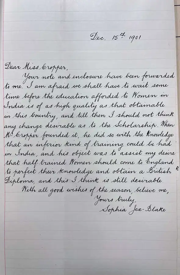 Sophia Jex-Blake was born on 21 January 1840 at 3 Croft Place, to Thomas Jex-Blake, a retired lawyer, and Mary Jex-Blake (née Cubitt). She was educated at home until the age of eight, after which she attended various private schools in southern England. In 1858, she enrolled at Queen's College, London, despite her parents' objections. While still a student, she was offered a position as a mathematics tutor at the college, which she held until 1861. During this period, she lived for some time with the family of social reformer Octavia Hill. Her family did not expect their daughter to earn a living, and her father refused her permission to accept a salary.[1]
