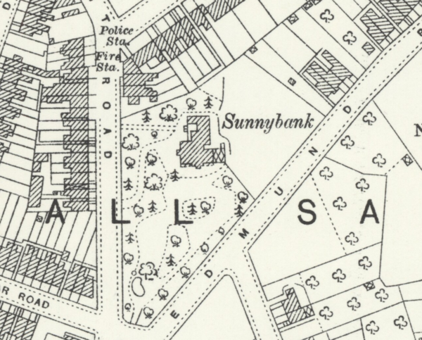 This property occupied, what was, a large corner plot between Mount Road and Edmund Road, accessed via a serpentine drive from the Mount Road side. It was originally Sunny Farm. By 1878 it was Sunnyside and by 1900 Sunnydale.